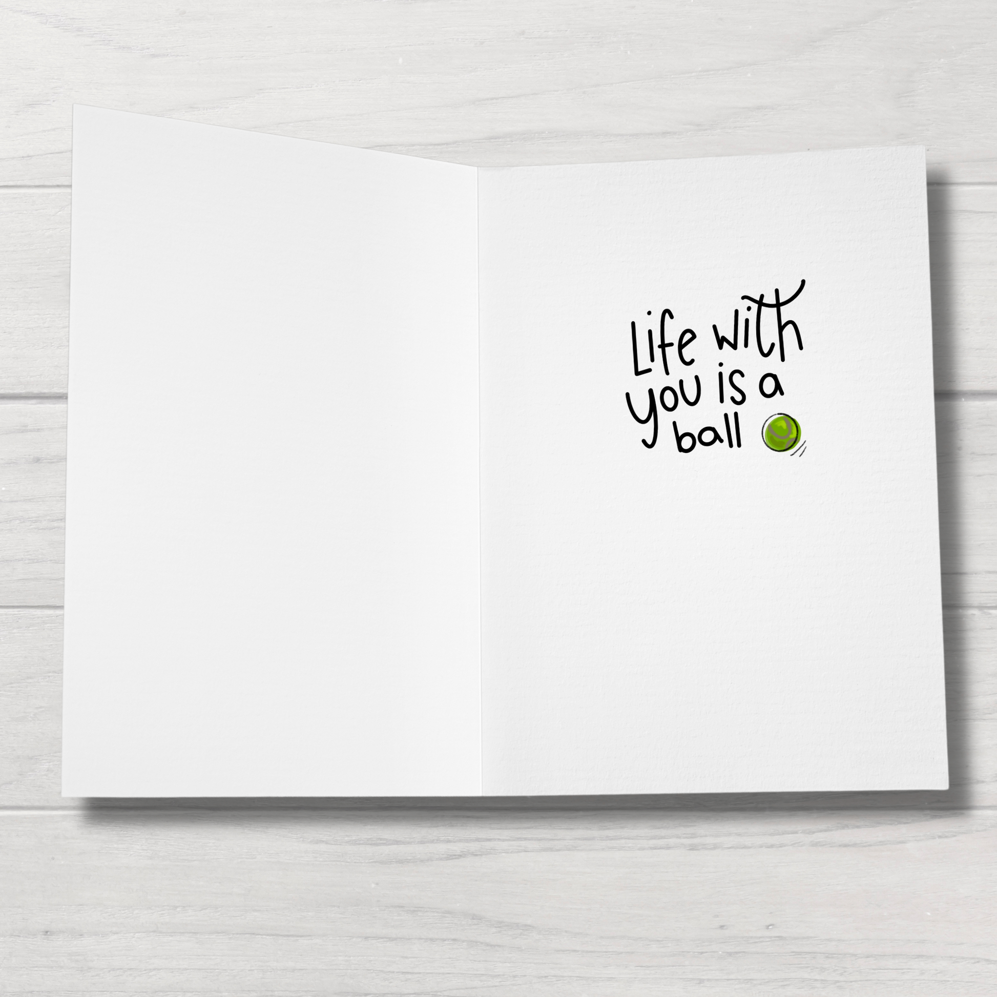 The interior sentiment reads: life with you is a ball