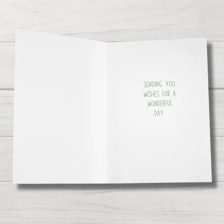 The interior sentiment reads: sending you wishes for a wonderful day