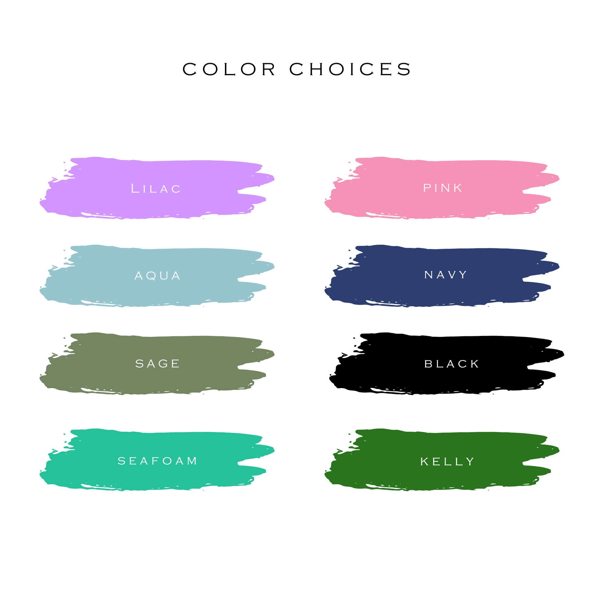 2) Choose your ink color: aqua, lilac, navy, seafoam, sage, black, or kelly and enter it in the personalization box along with your breed choice and custom text.